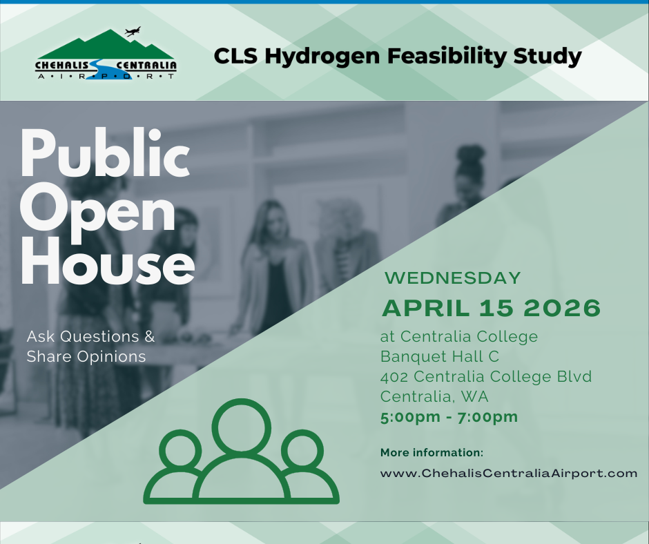 The Chehalis-Centralia Airport is studying the feasibility of a multi-modal hydrogen facility in the NE corner of airport property, just west of Home Depot. The study is examining the market demand, potential infrastructure, access road design, and completing necessary environmental studies.